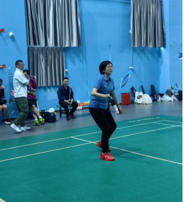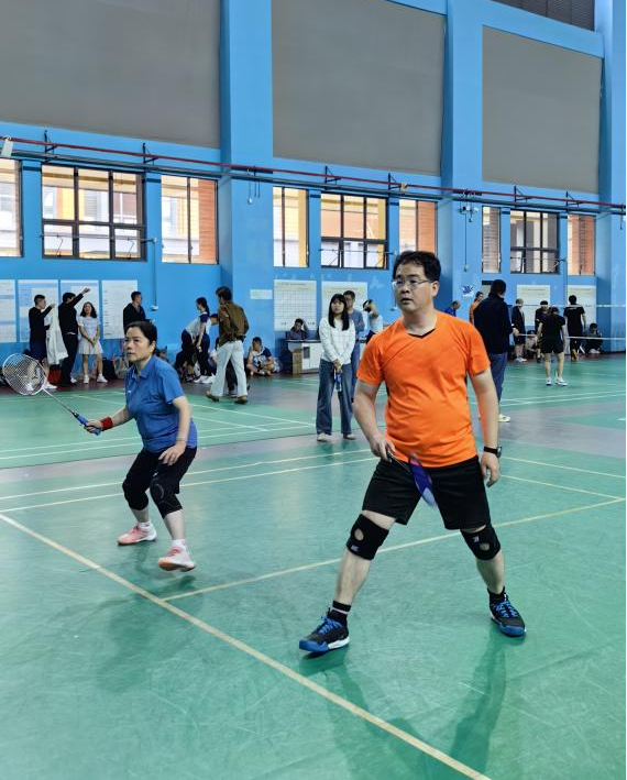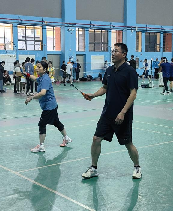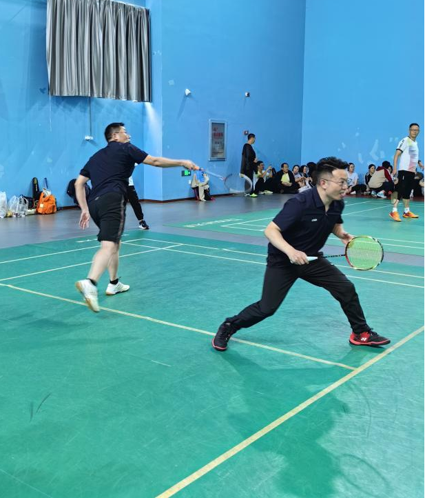 男双赛场上我院男教师凭借稳健的发挥与密切的配合,与对手展开多轮交锋。他们快速移动,积极防守,展现出良好的竞技状态。