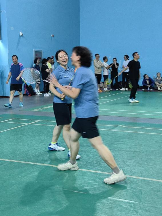 女双对决中女教师们步伐敏捷,反应迅捷,她们的回球精准果断,展现了非凡的耐心与毅力,每一次得分都赢得场边阵阵喝彩。
